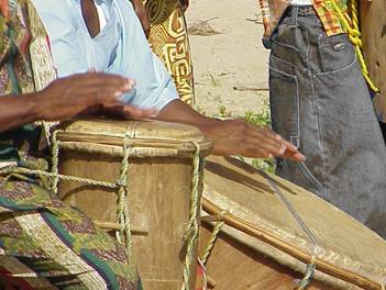Drumming, Conch Shell Blowing, and Singing all welcome the boats ashore on